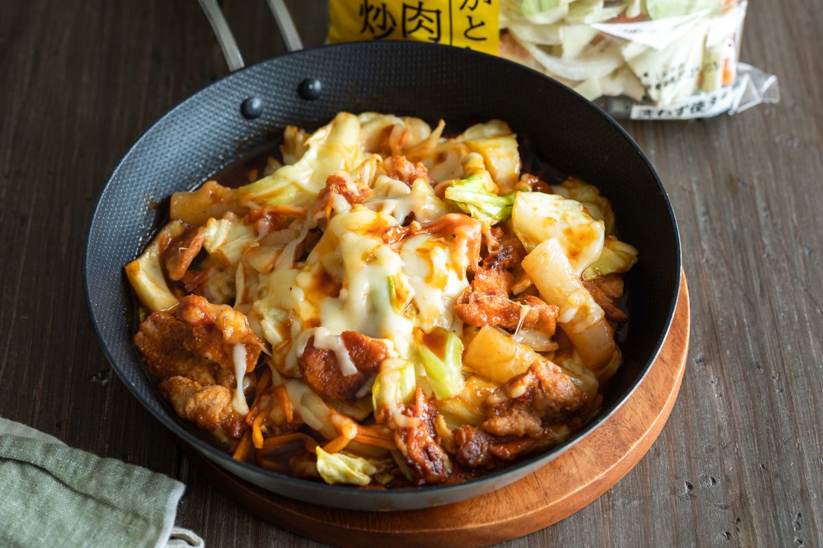 - ②のトッポギ、合わせダレ、半量のチーズを加えてざっくり混ぜる。上に残っている半量のチーズをのせたら蓋をし、1分ほど蒸らして完成。