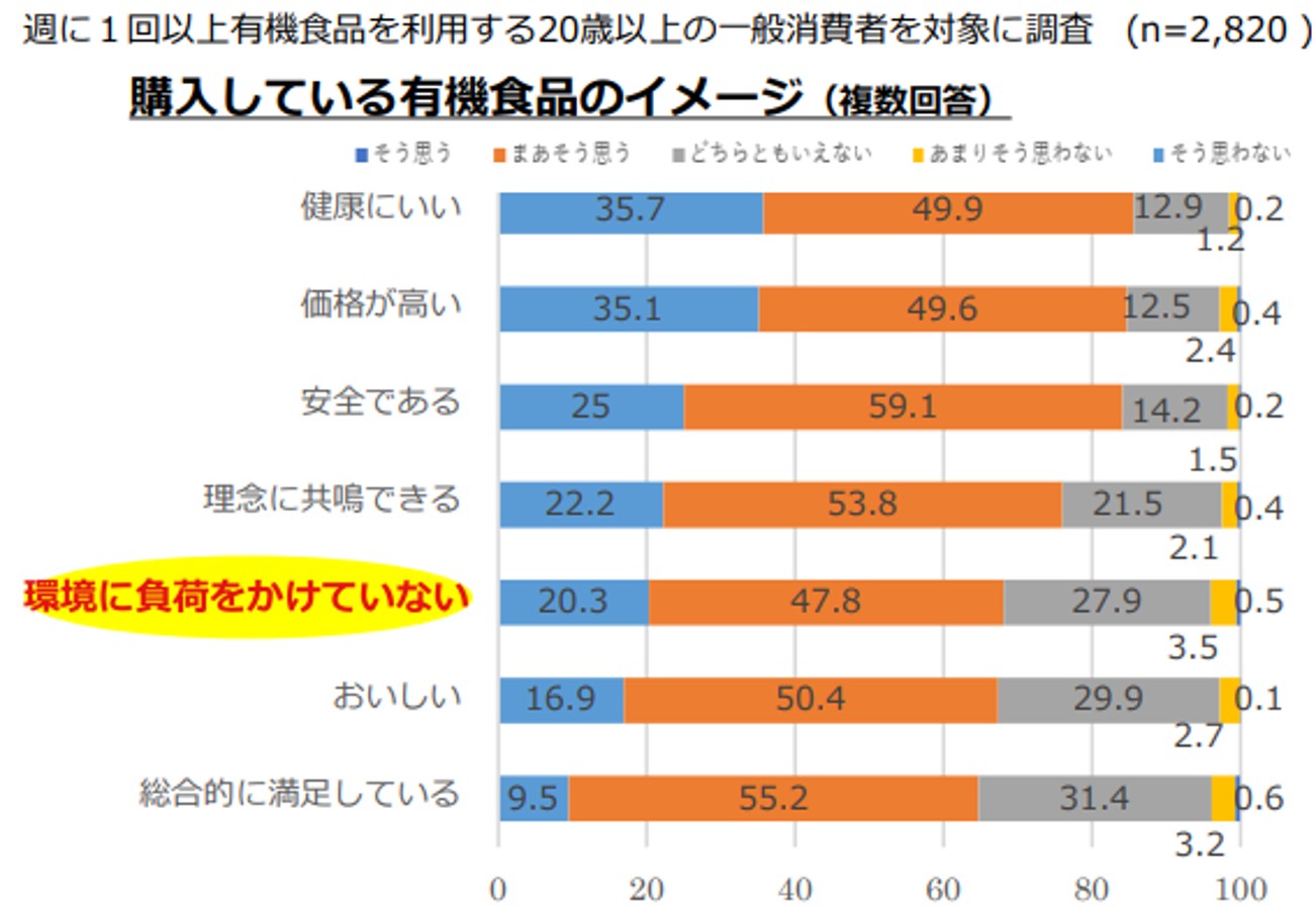 しかしながら、有機食品に対するイメージとして上位に来るのが”価格の高さ”です。調査によると、実に80%以上の方が「価格が高い」というイメージを持っています(図5)。一方で一般的に、もやしやスプラウトは税抜100円以下で販売されている商品が多く、また工場で作る野菜のため価格が安定しており、どなたでも比較的手に取りやすい商品です。そういった身近で手に取りやすい商品で、まずは有機食品に触れるきっかけを作っていただきたいと考えています。