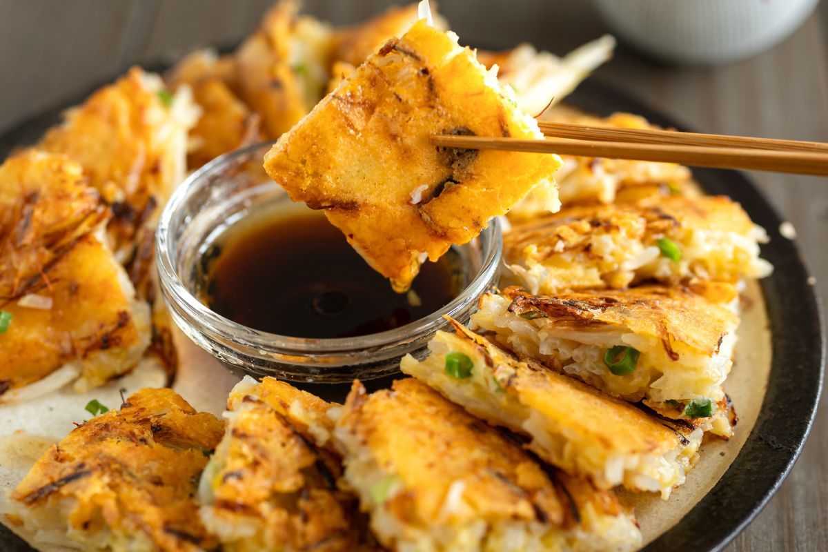 チヂミを焼く際は多めの油でカリっと焼き上げるのがポイントです。