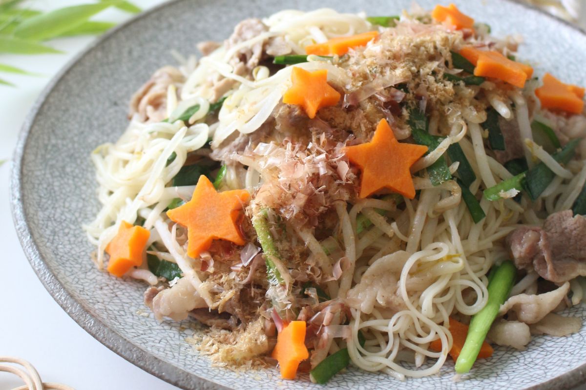 - 茹でたそうめんも加えて、めんつゆを加えて炒め混ぜ、塩こしょうで味を調える。